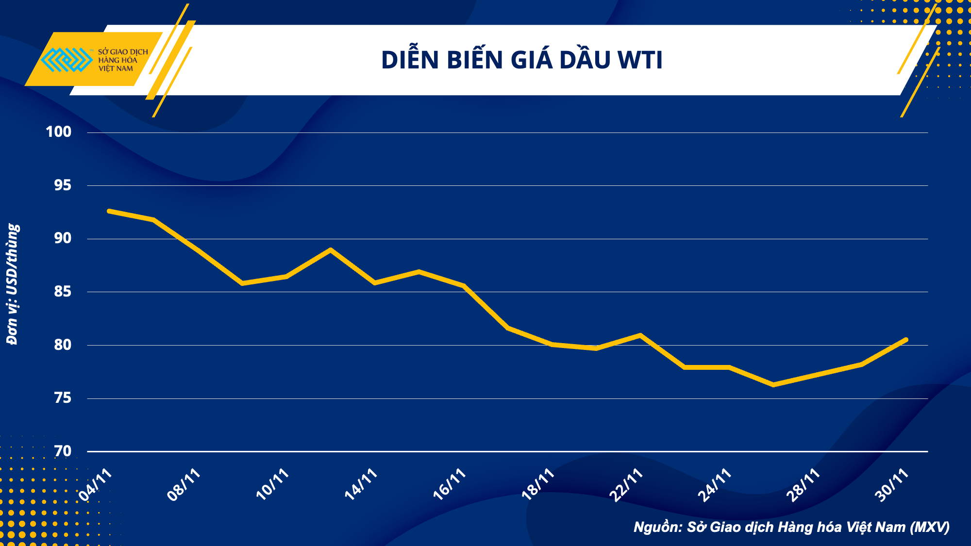Kết thúc phiên giao dịch cuối cùng của tháng 11, giá dầu thô WTI tăng 3,01% lên 80,55 USD/thùng, giá dầu thô Brent cũng tăng 3,23% lên 86,97 USD/thùng.
