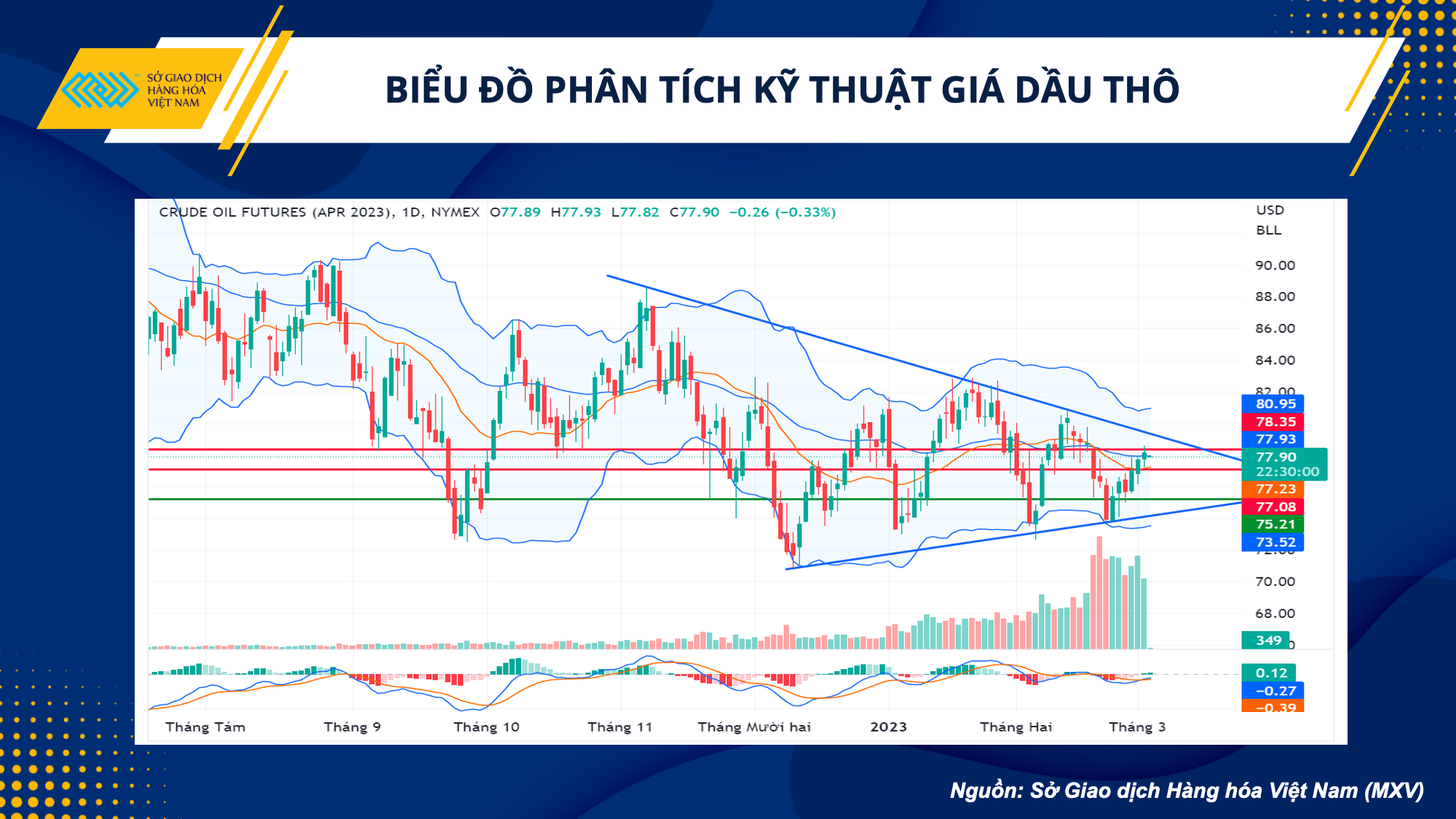 Về mặt kỹ thuật, giá dầu vẫn chưa vượt được vùng kháng cự vùng 78,7 USD, rút chân khi chạm cạnh trên của dải Bollinger Band trên khung H4. Nhiều khả năng giá sẽ test về cạnh giữa của dải ở vùng 77,5 USD và dao động với biên độ hẹp. Mặc dù tăng trong phiên hôm qua nhưng khối lượng giao dịch mỏng hơn có thể là tín hiệu cho thấy lực mua suy yếu. Các nhà đầu tư có thể mở bán khi giá lên vùng 78,5 USD với kỳ vọng chốt lời tại 77,5 USD, cắt lỗ khi giá vượt 79 USD.