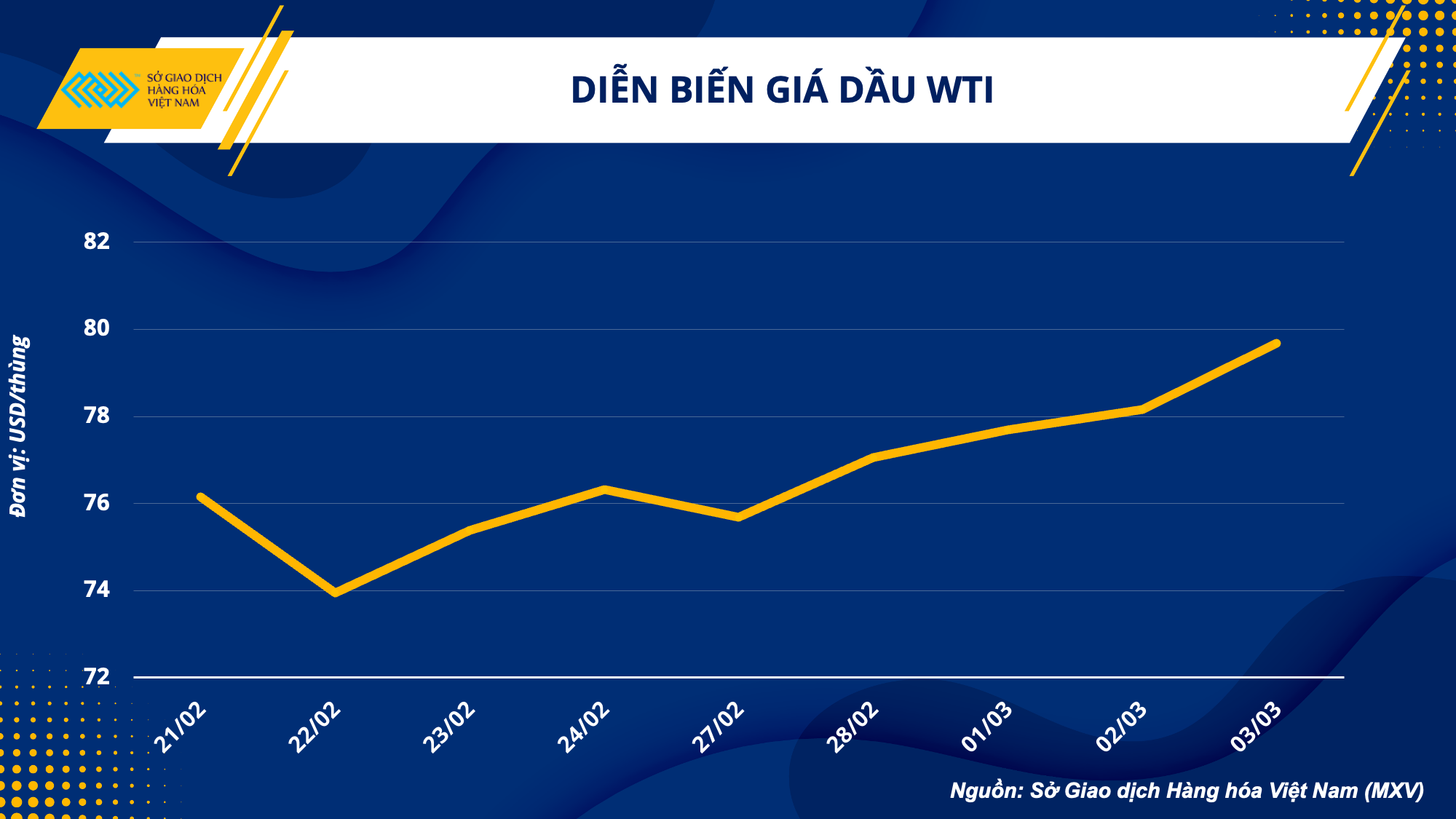 Bên cạnh đó, báo cáo từ Cơ quan quản lý Thông tin năng lượng Mỹ (EIA) cho thấy khối lượng xuất khẩu dầu thô của Mỹ tăng từ 4.6 triệu thùng lên 5,6 triệu thùng trong tuần kết thúc ngày 24/02, phản ánh nhu cầu mạnh mẽ đối với dầu thô của Mỹ cũng góp phần thúc đẩy lực mua. Trong khi đó, các công ty năng lượng của Mỹ trong tuần qua đã cắt giảm số lượng giàn khoan dầu và khí đốt tự nhiên hoạt động trong tuần thứ 3 liên tiếp, là lần đầu tiên kể từ tháng 8, với số giàn khoan dầu xuống mức thấp nhất kể từ tháng 9.