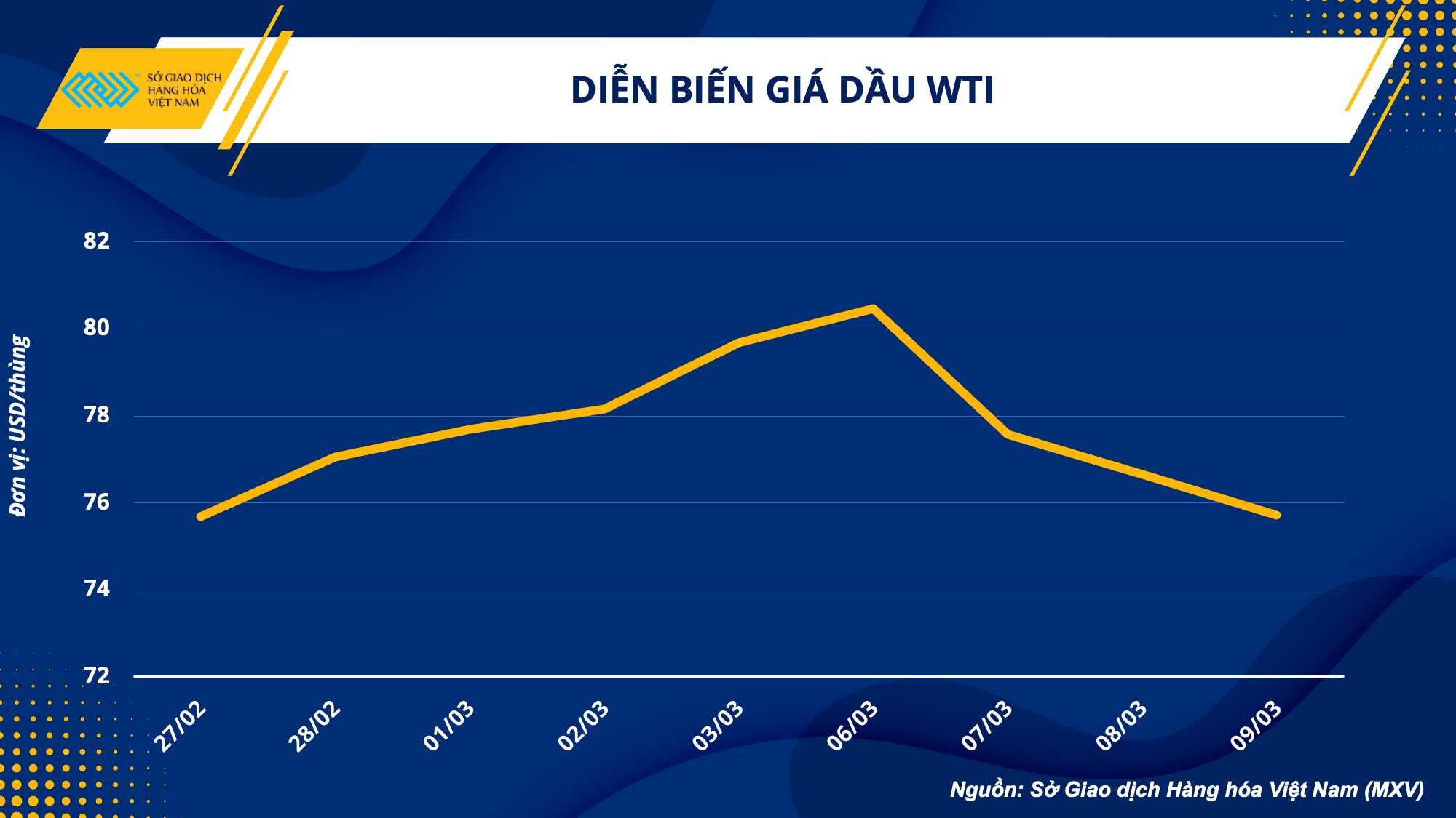 Thị trường dầu thô đóng cửa trong sắc đỏ phiên thứ ba liên tiếp khi tâm lý e ngại rủi ro ngày càng gia tăng. Kết thúc phiên 10/03, giá dầu thô WTI giảm 1,23% về 75,72 USD/thùng, giá dầu thô Brent giảm 1,29% về 81,59 USD/thùng.