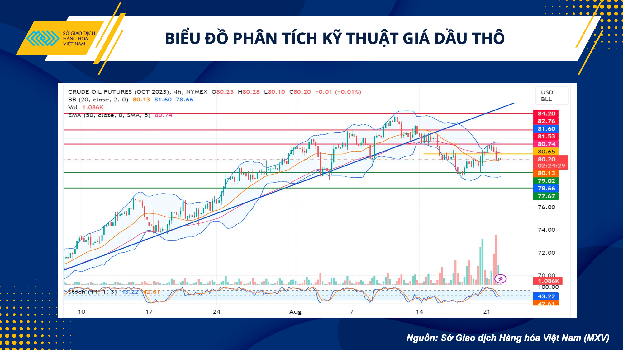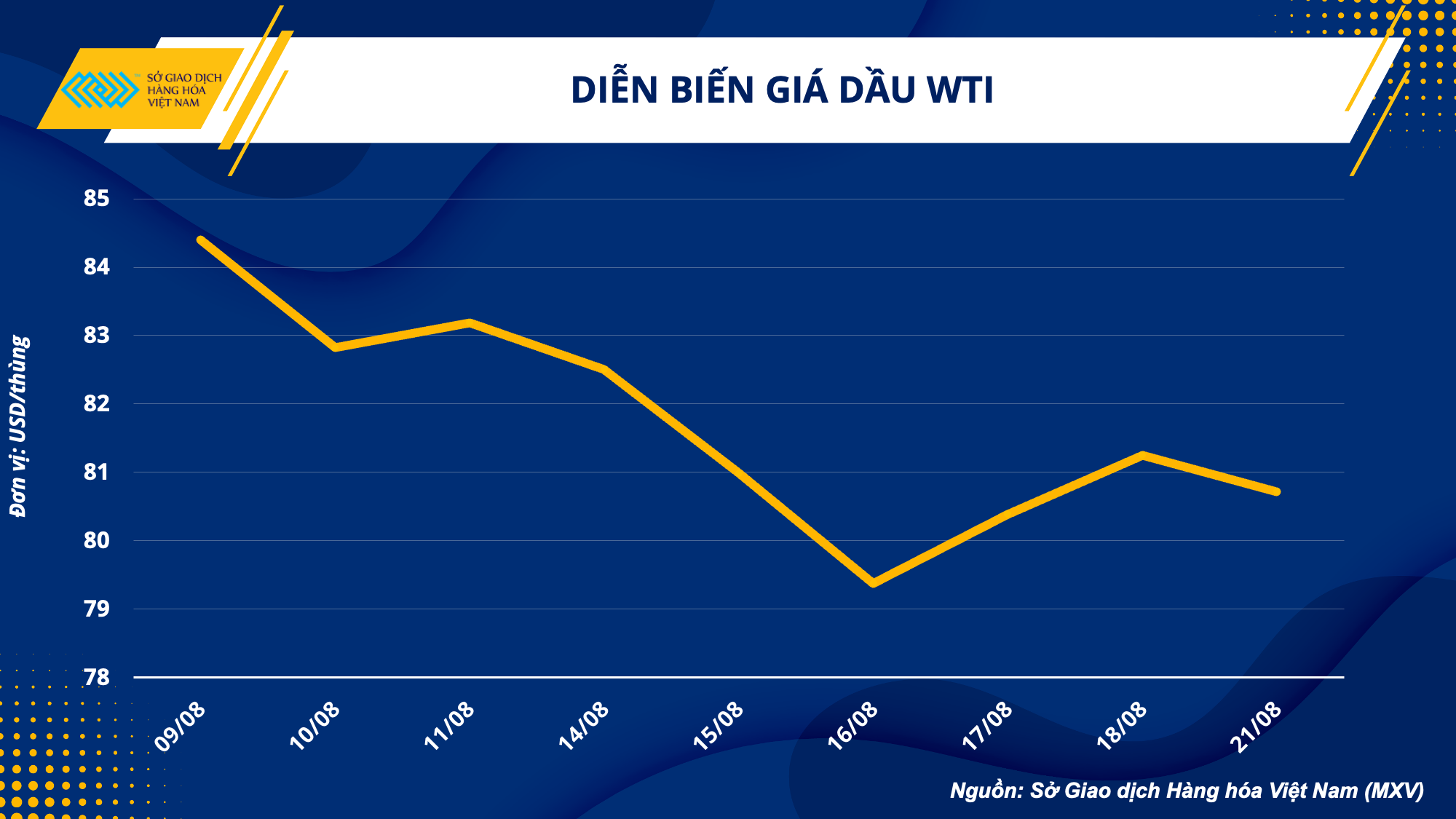 Giá dầu mở cửa phiên giao dịch ngày 21/08 với lực mua mạnh mẽ, nhưng đã nhanh chóng đảo chiều giảm trở lại vào nửa cuối phiên và đóng cửa trong sắc đỏ. Cụ thể, giá dầu WTI chốt ngày tại mức giá 80,12 USD/thùng, tương đương với mức giảm 0,67%. Giá dầu Brent giảm 0,32% xuống mức 84,09 USD/thùng.