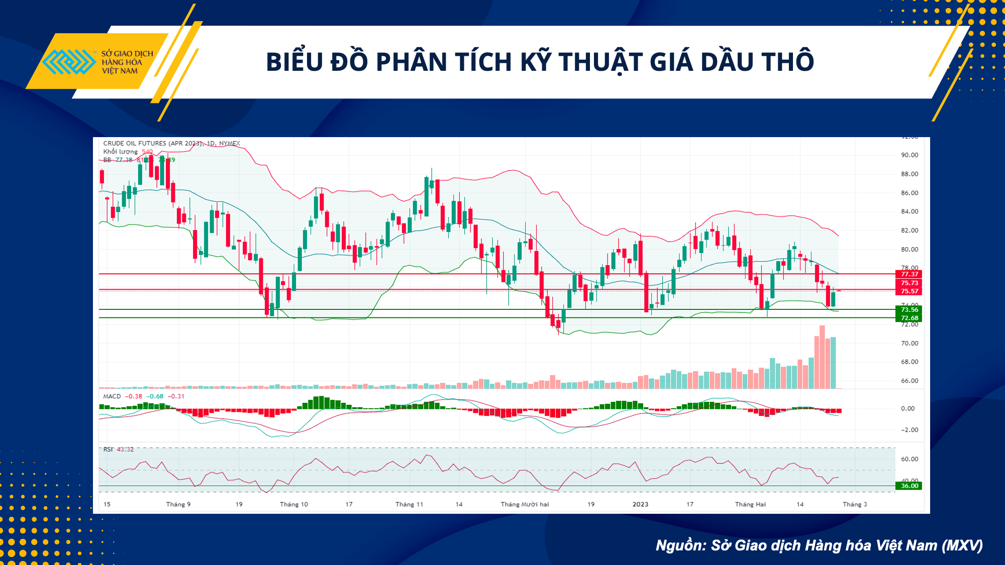 Về mặt kỹ thuật, giá dầu bật lên sau khi gần chạm cạnh dưới Bollinger Band. Lực bắt đáy tại khu vực hỗ trợ 73,5 USD vẫn rất mạnh mẽ. Chỉ số RSI đã tạo đáy thấp hơn và hướng lên trên, cung với khối lượng giao dịch của phiên tăng hôm được cải thiện.
