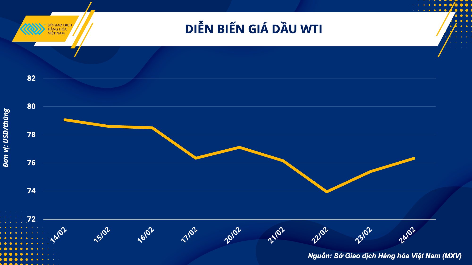 Dầu thô đã trải qua tuần giao dịch ngày 20/02 – 26/02 với các phiên tăng giảm trái chiều, khiến cho mặt hàng này đóng cửa tuần với mức thay đổi không quá mạnh so với tuần trước đó. Cụ thể, dầu WTI giảm 0,3% xuống còn 76,32 USD/thùng, trong khi dầu Brent tăng nhẹ 0,18% lên mức 82,82 USD/thùng. Sức ép vĩ mô và dữ liệu tồn kho Mỹ tăng mạnh đã liên tục gây sức ép tới giá, tuy nhiên một số lo ngại về nguồn cung cũng đã hạn chế lực bán, đặc biệt là trong hai phiên cuối tuần.