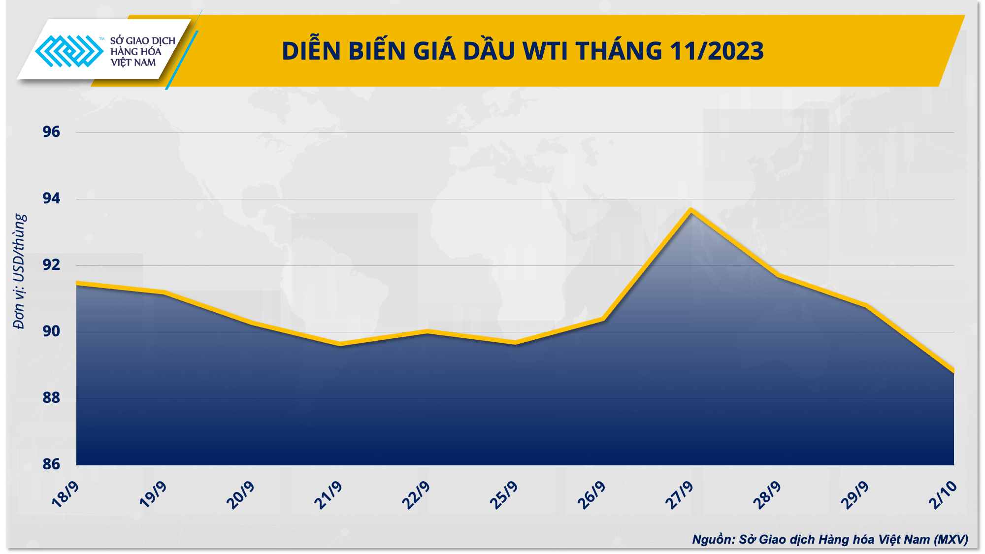 Cụ thể, giá dầu WTI kỳ hạn tháng 11 giảm 2,17% xuống 88,82 USD/thùng. Dầu Brent kỳ hạn tháng 12 chốt phiên với mức giá 90,71 USD/thùng, sau khi giảm 1,62%.