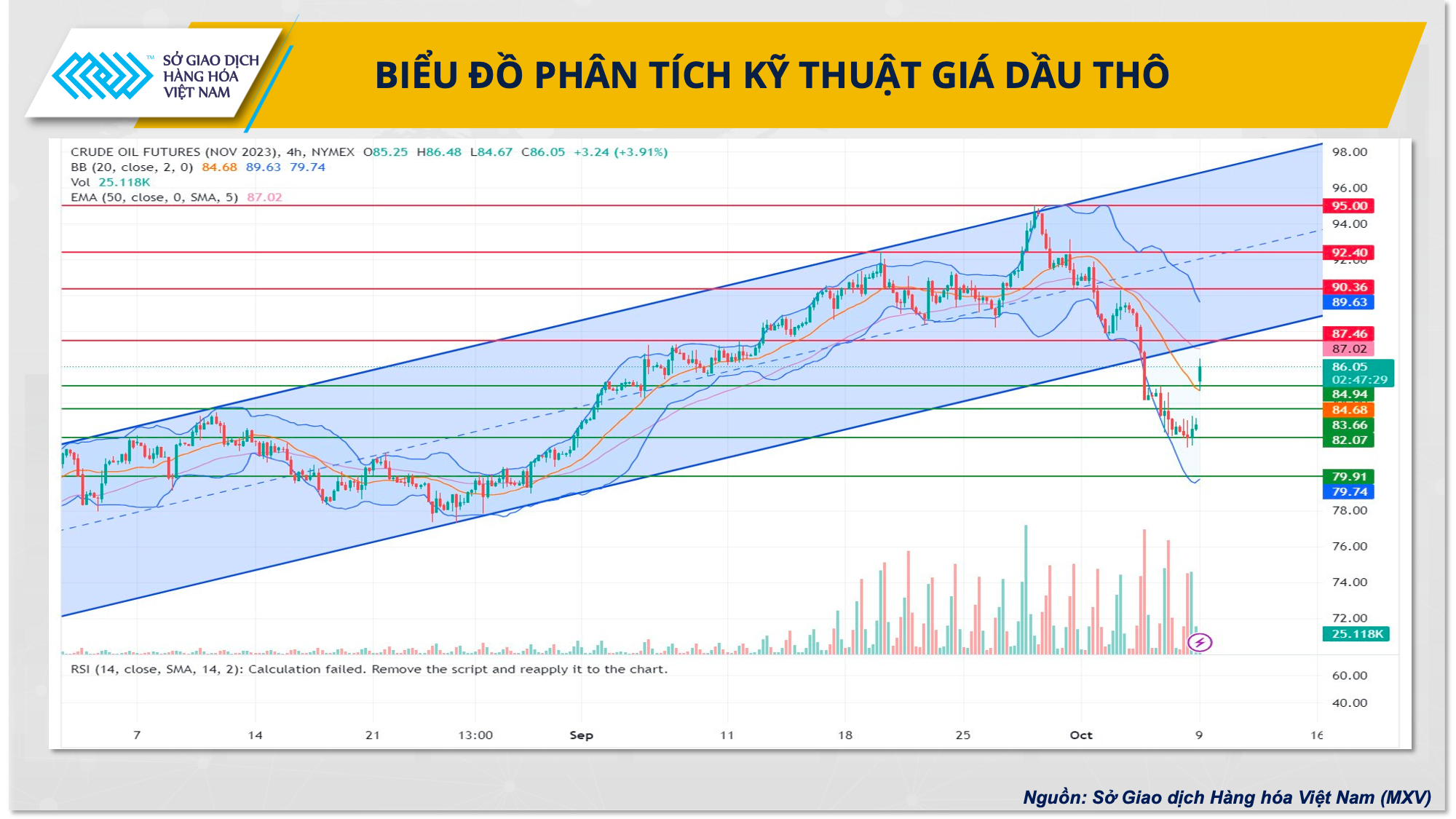 Về mặt kỹ thuật giá dầu, trước thông tin cơ bản mới nhất về xung đột giữa Israel và phiến quân Hamas tại khu vực Trung Đông, đã kéo giá dầu gap-up phiên mở cửa sáng nay, vượt lên trên đường SMA của dải Bollinger Band trên khung H4, đạt trên 85 USD/thùng.